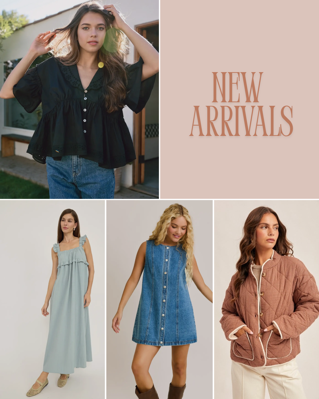 This collection features fall staples + a few pieces you'll want to take with you on those warmer vacations you have planned. Shop below for denim blues, quilted patterns and breezy fabrics.